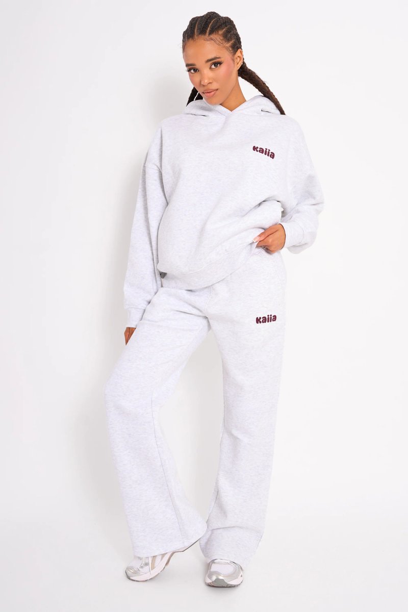 The Kaiia Light Grey Marl and Plum Wide Leg Joggers is available in sizes 14, 16, 18.