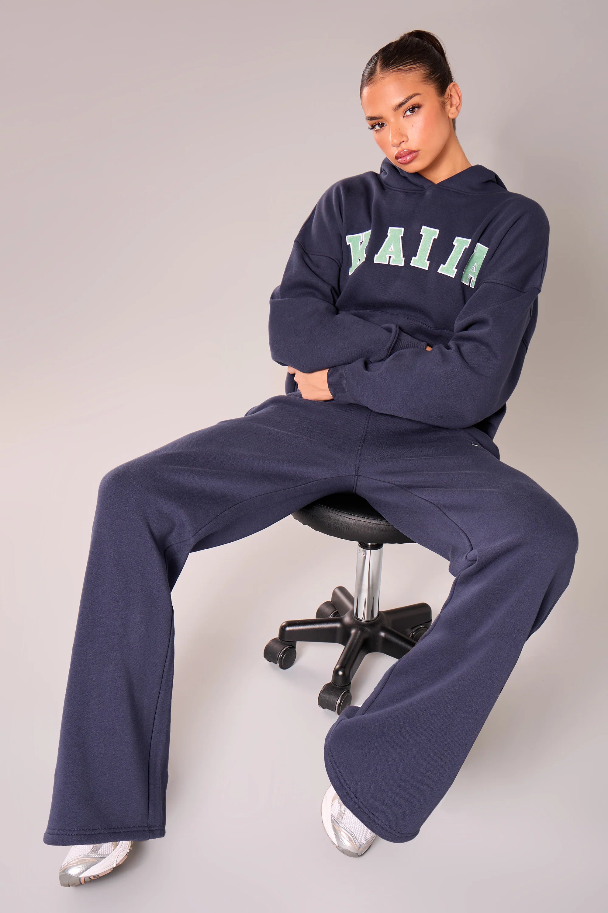 The Kaiia Slogan Wide Leg Joggers Navy & Jade Green is ideal for casual, weekend.