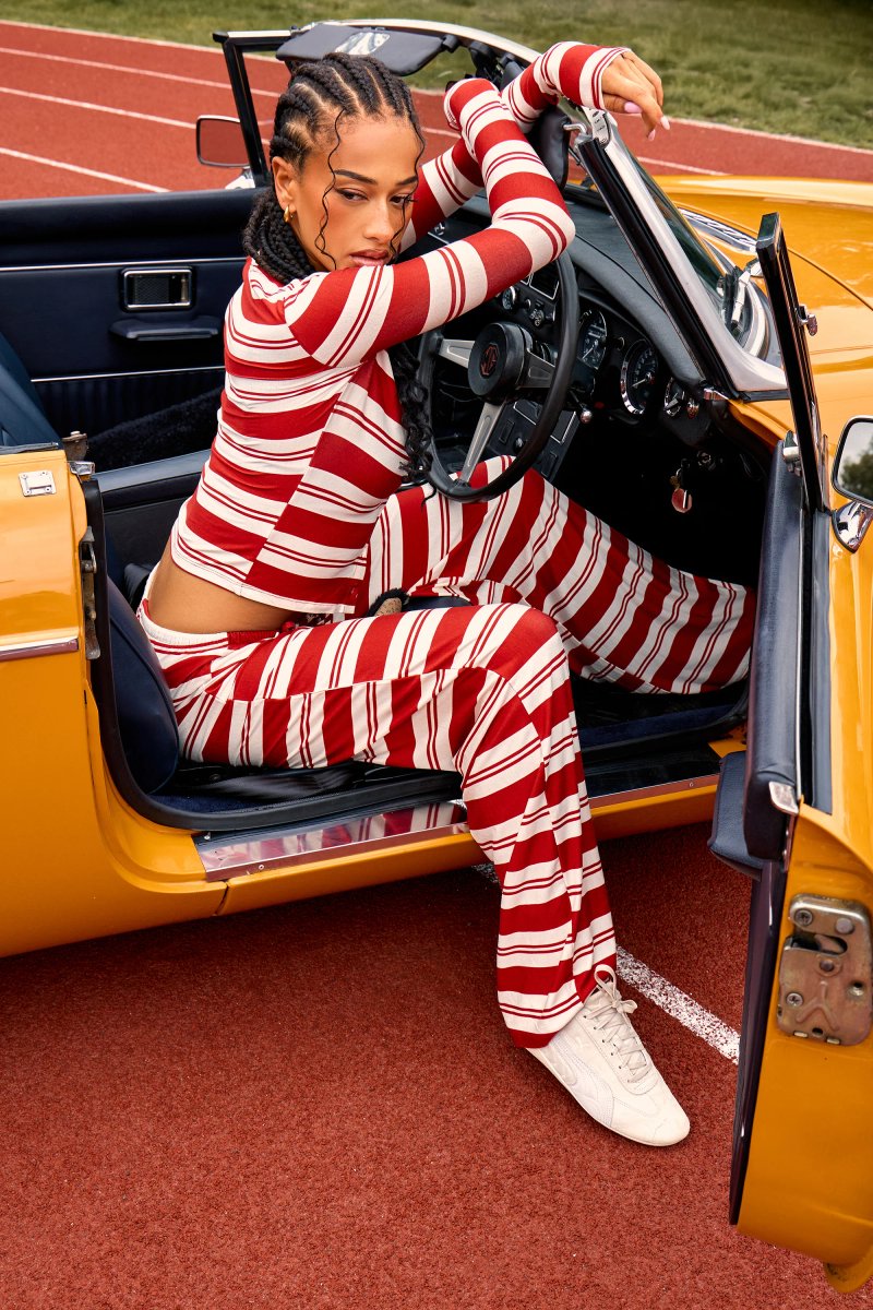 The Kaiia Red & White Striped Wide Leg Trousers is ideal for casual, evening.