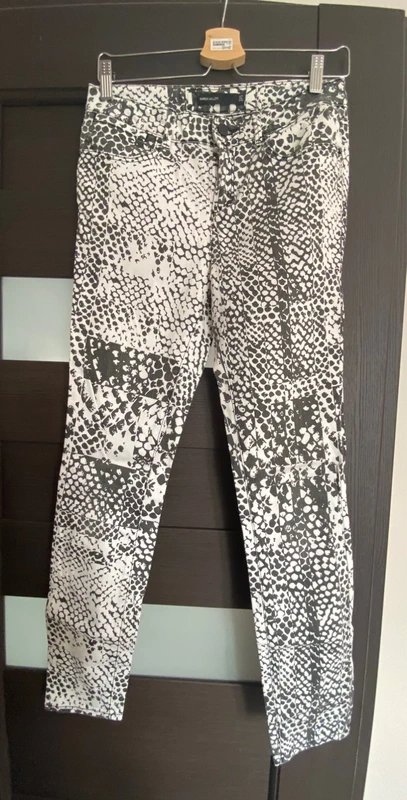The Karen Millen Black and White Patterned Cargo Pants is available in sizes S.