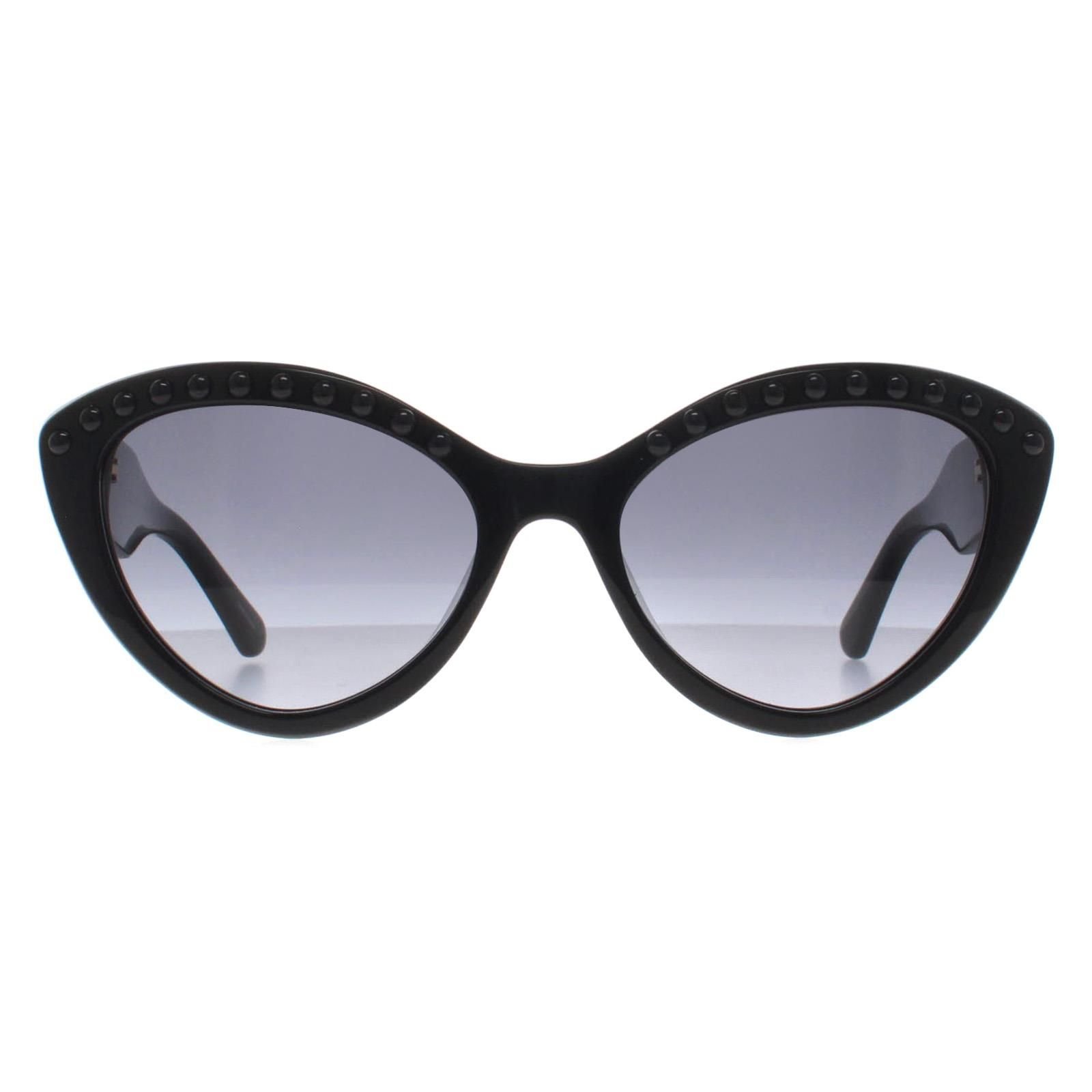 These Kate Spade sunglasses feature a cat-eye silhouette with a black and dark gray gradient frame. The pearl accent adds a touch of luxury to your everyday style. Perfect for adding a sophisticated look to any outfit.