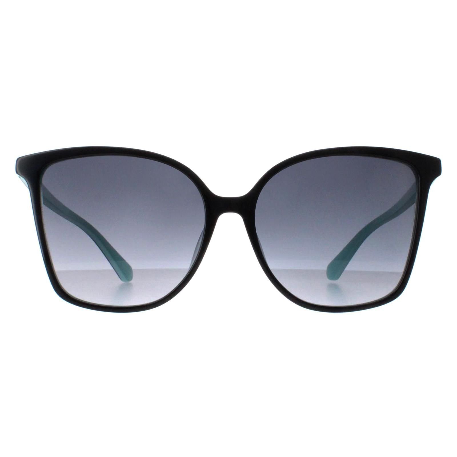 Sophisticated square frame sunglasses by Kate Spade in a black dark grey gradient. Crafted from high-quality acetate, these sunglasses offer a lightweight and comfortable fit. The graceful curves and spade logo add a touch of refinement.