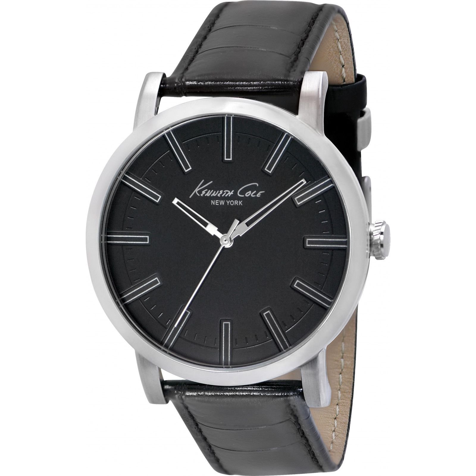 Stylish Kenneth Cole men's watch with a black dial and silver-tone accents. Features a black leather strap and a quartz movement for precision timekeeping. Ideal for everyday wear and special occasions.