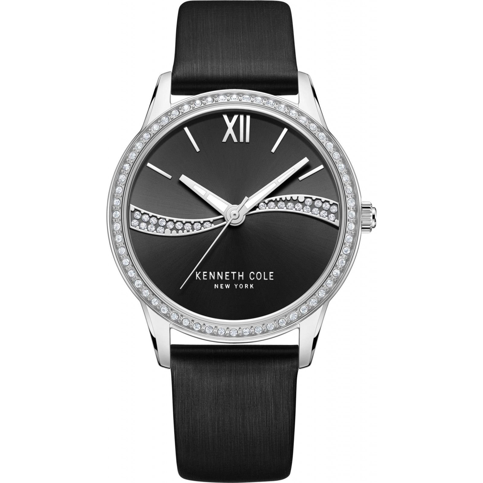 Stylish Kenneth Cole watch with a black dial and silver-tone accents. Features a crystal-embellished bezel and elegant design for a touch of luxury.