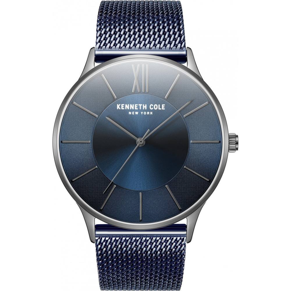Elegant Kenneth Cole men's watch with a blue dial and silver-tone hands. Features a mesh-style metal band and a classic design suitable for any occasion.