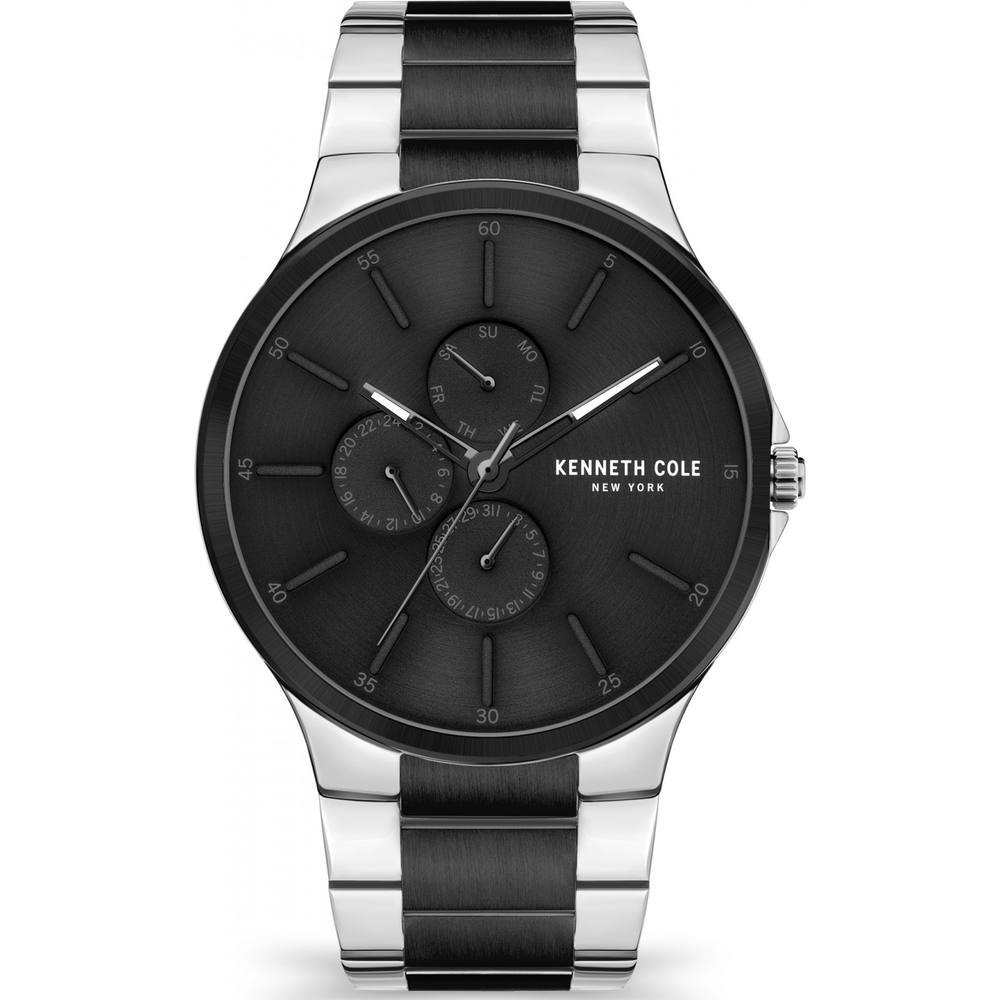 Stylish Kenneth Cole men's watch with a multicolor design. Features a black dial with silver accents and a stainless steel band. Perfect for everyday wear.