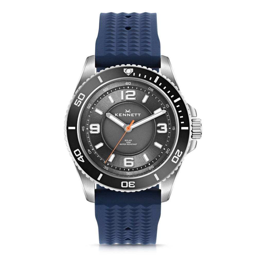 Elevate your adventures with the Kennett Solaxplorer watch, powered by solar energy for up to 4 months. Featuring a 100m waterproof design, it's crafted from durable 316L stainless steel and a blue rubber strap. Ideal for any adventure or everyday wear.