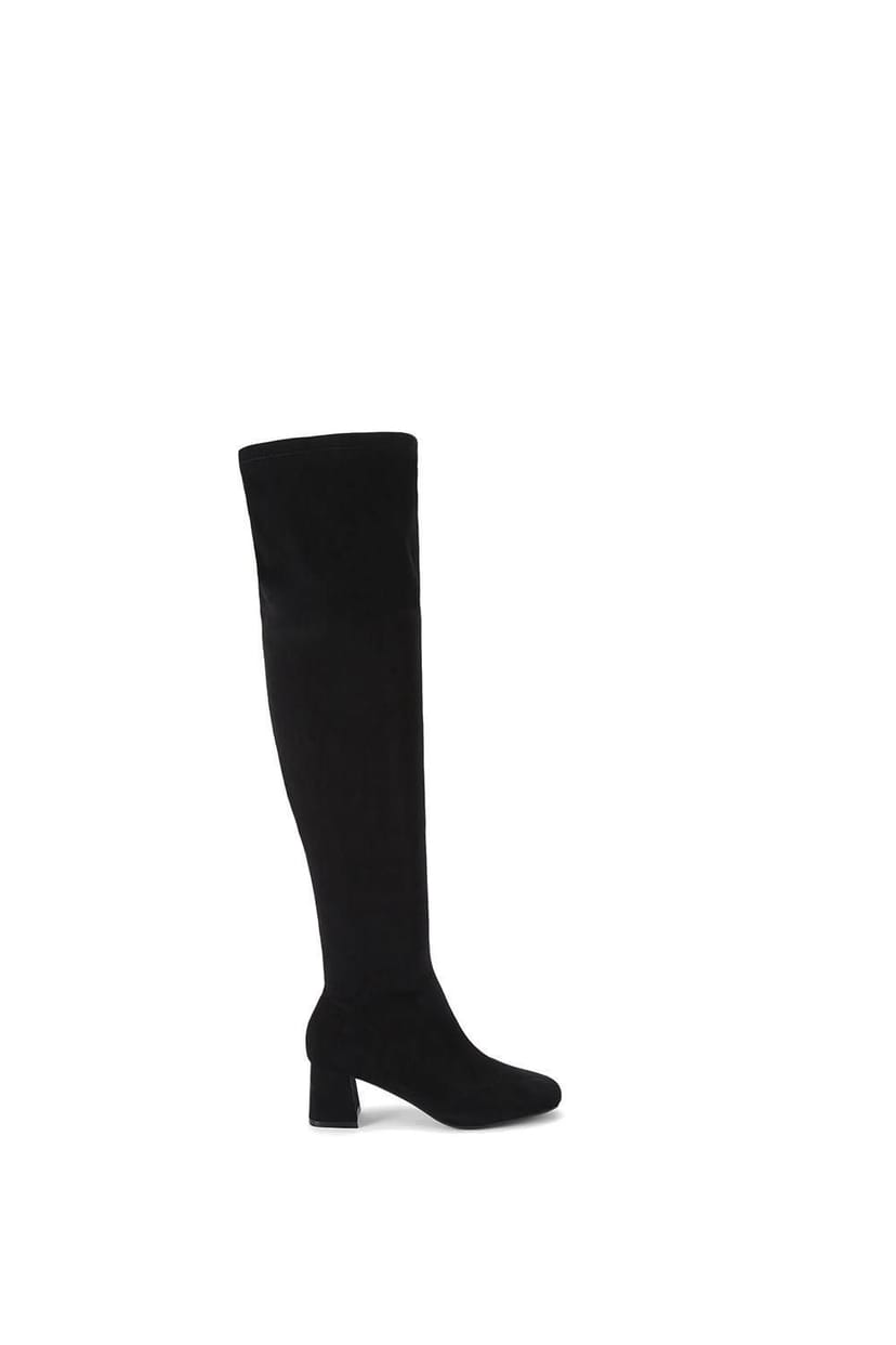 Elegant over-the-knee boots in black microsuede with a sleek silhouette. Featuring a 6cm heel and a gunmetal zipper on the inner side of the ankle, these boots are perfect for adding a touch of sophistication to any outfit.