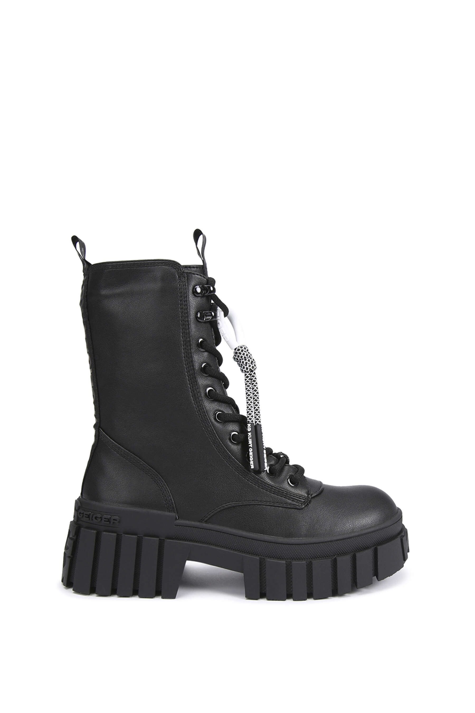 The KG Kurt Geiger Black Leather Lace-Up Boots is ideal for casual, evening, date-night.