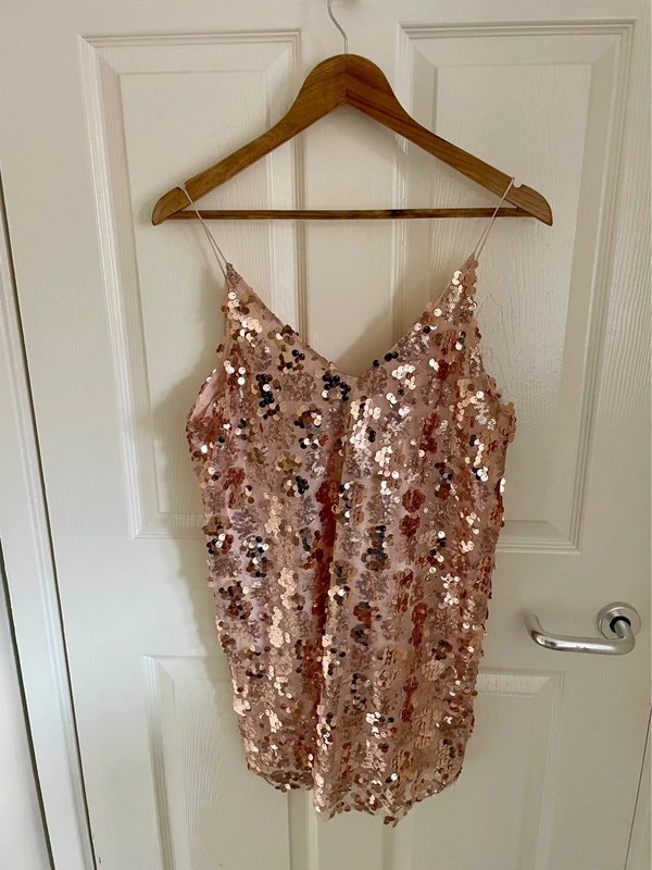 Elegant cami dress adorned with sparkly sequins, offering a loose and comfortable fit. Ideal for a dazzling night out.