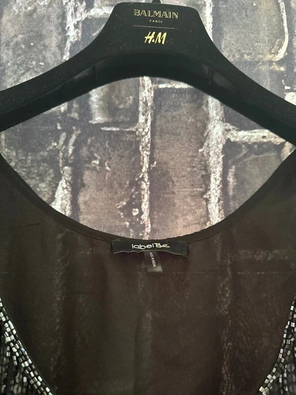 Stylish black sleeveless midi dress by Label Be, featuring a scoop neckline and bead trim details. The stretchy fabric offers a flattering fit and the midi length adds a touch of elegance. Perfect for evening events or special occasions.