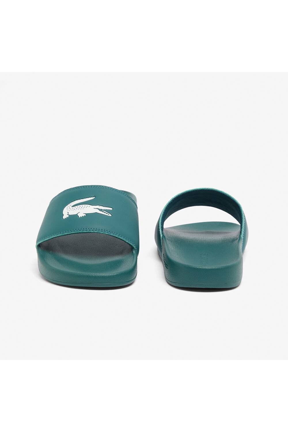The Lacoste Men's Serve Slides in Green is available in sizes 8, 9.