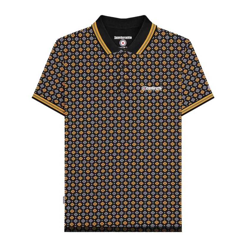 The Lambretta Men's Geometric Polo Shirt in Black is ideal for casual, smart-casual.