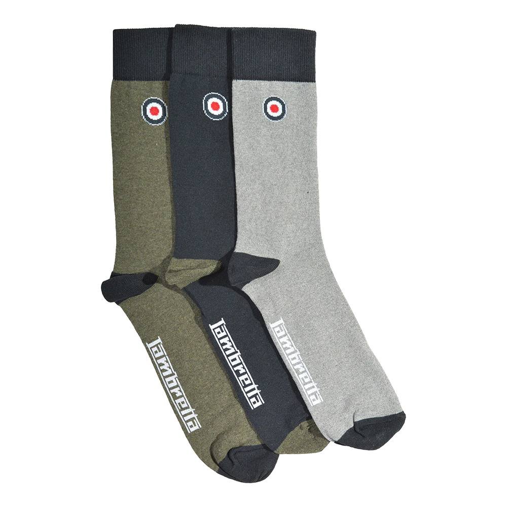 Pack of three stylish Lambretta men's socks in a versatile grey colour. Made from a blend of polycotton and elastane, these socks offer a comfortable fit and stretchy material. Featuring a ribbed cuff and a plain design with a subtle paisley pattern, they are perfect for everyday wear.