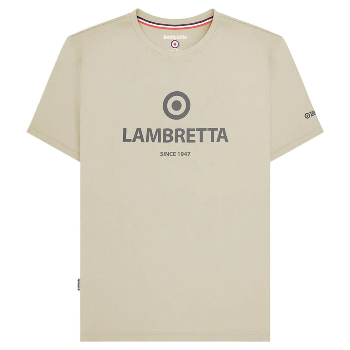 Stylish medium beige cotton t-shirt from Lambretta. Features an embroidered logo on the chest and 'Since 1947' text below. Perfect for casual wear.