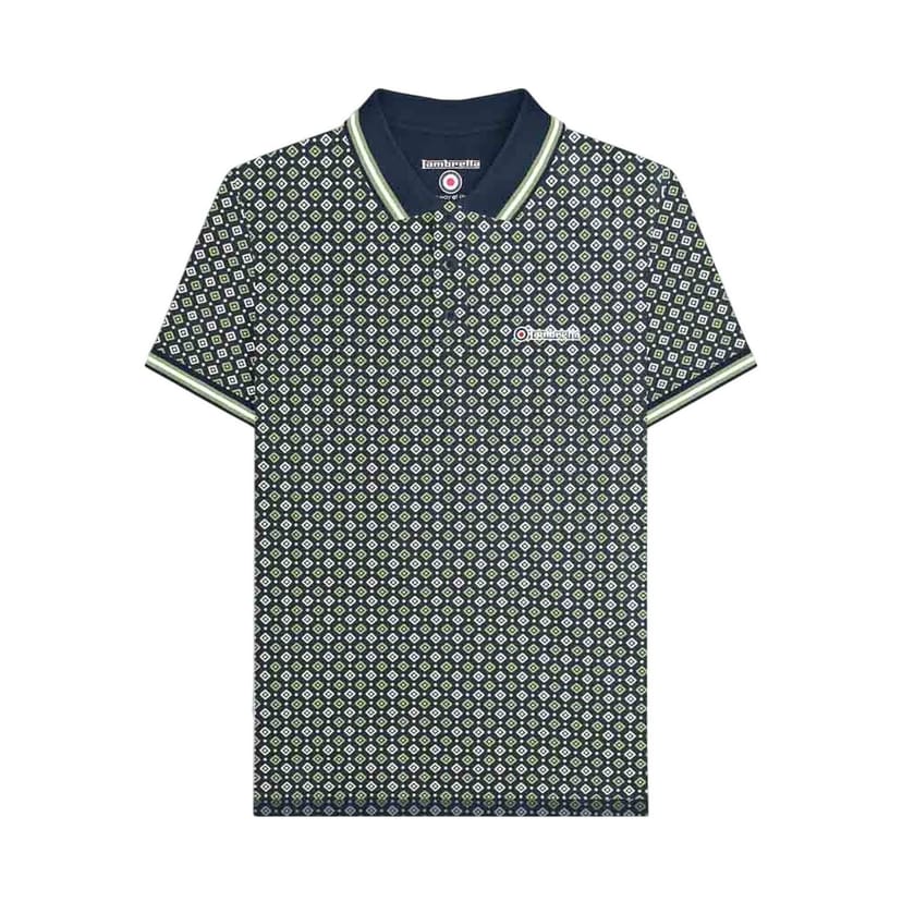 The Lambretta Men's Geometric Polo Shirt in Navy is ideal for casual, work, date-night.