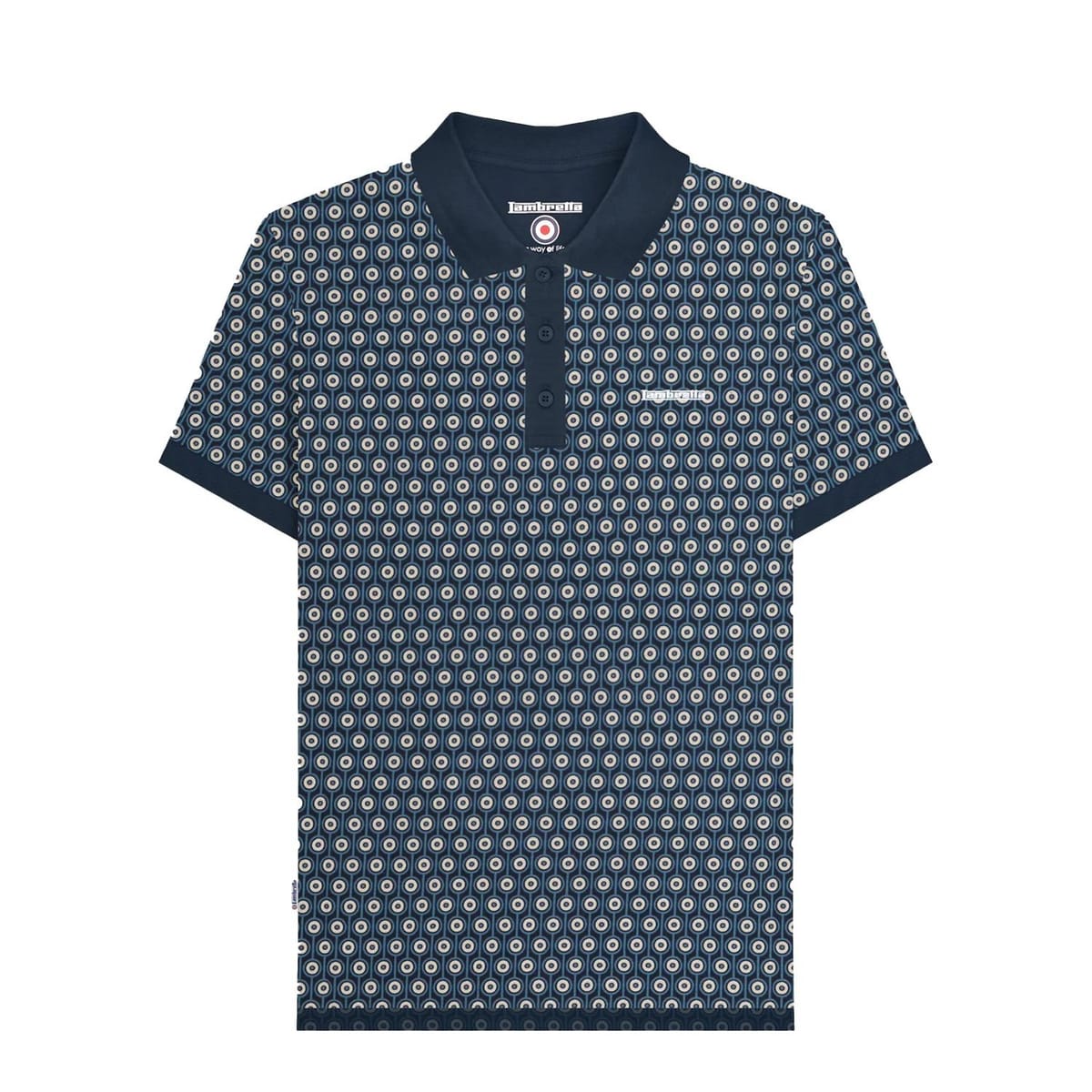 The Lambretta Navy Geometric Polo Shirt in 100% Cotton is ideal for casual, everyday, smart-casual.