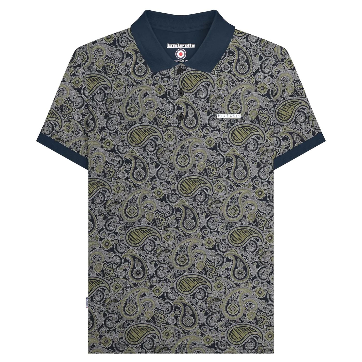 The Lambretta Navy Paisley Polo Shirt in Cotton is available in sizes L.