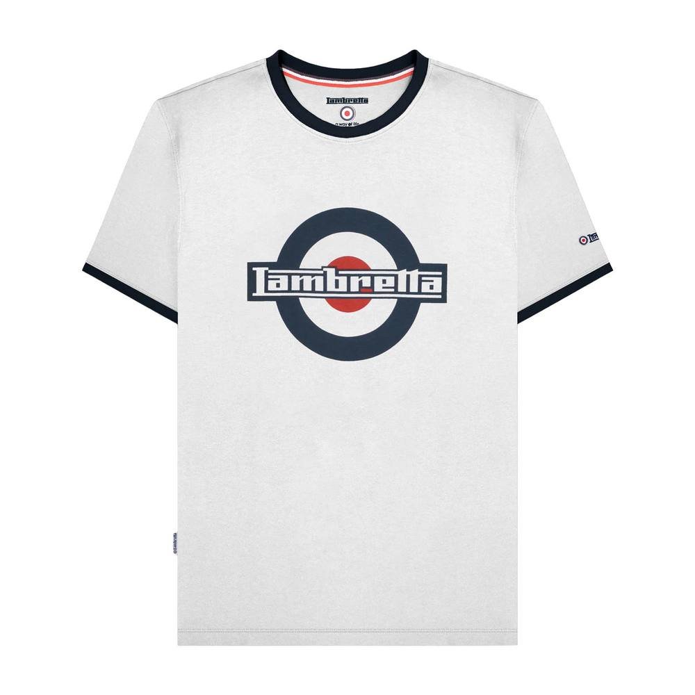 The Lambretta Men's SS25 Ringer Logo T-Shirt in Off-White is available in sizes S.