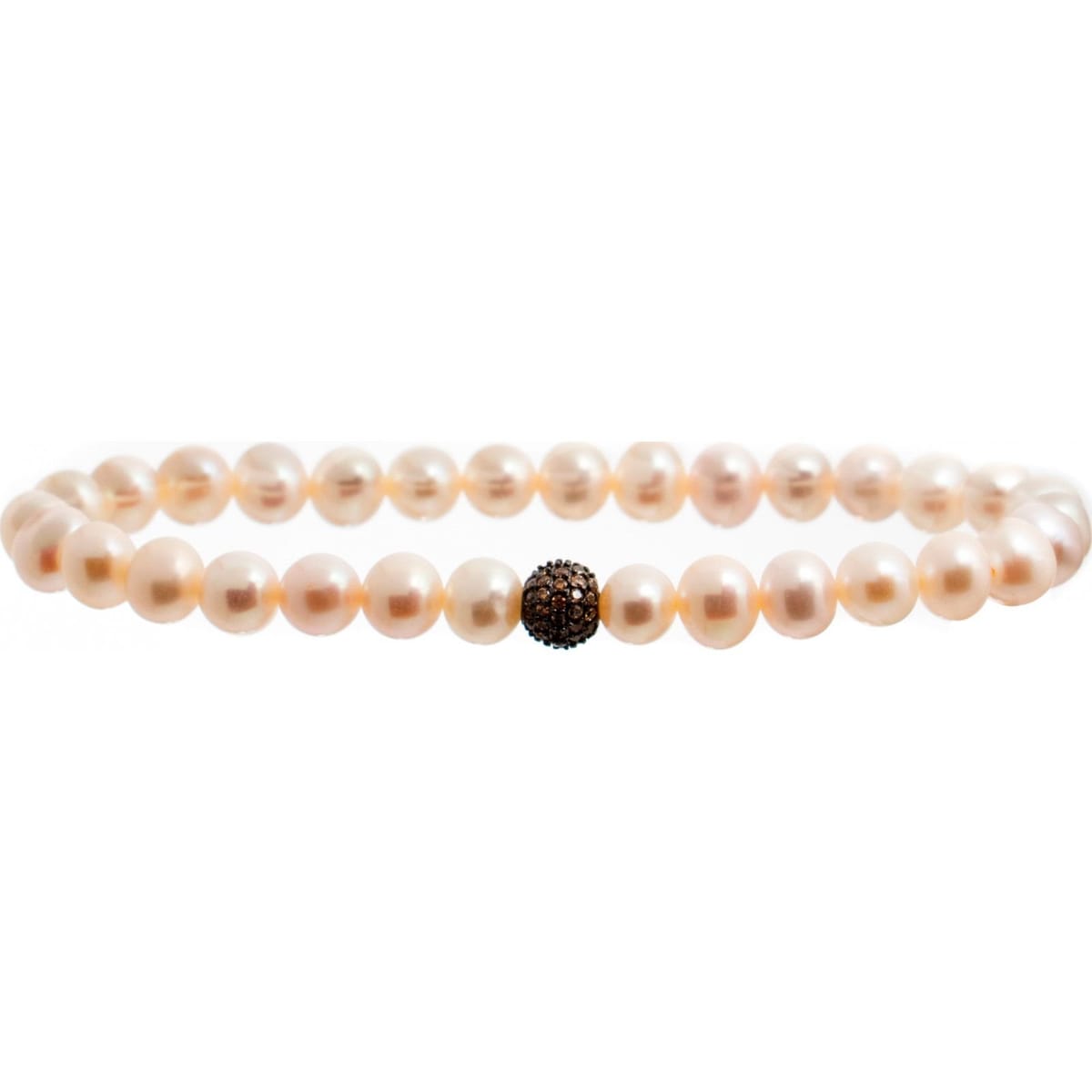 Elegant pink pearl bracelet from Lancaster, featuring a delicate strand of freshwater pearls with a black accent bead. Perfect for adding a touch of sophistication to any outfit.