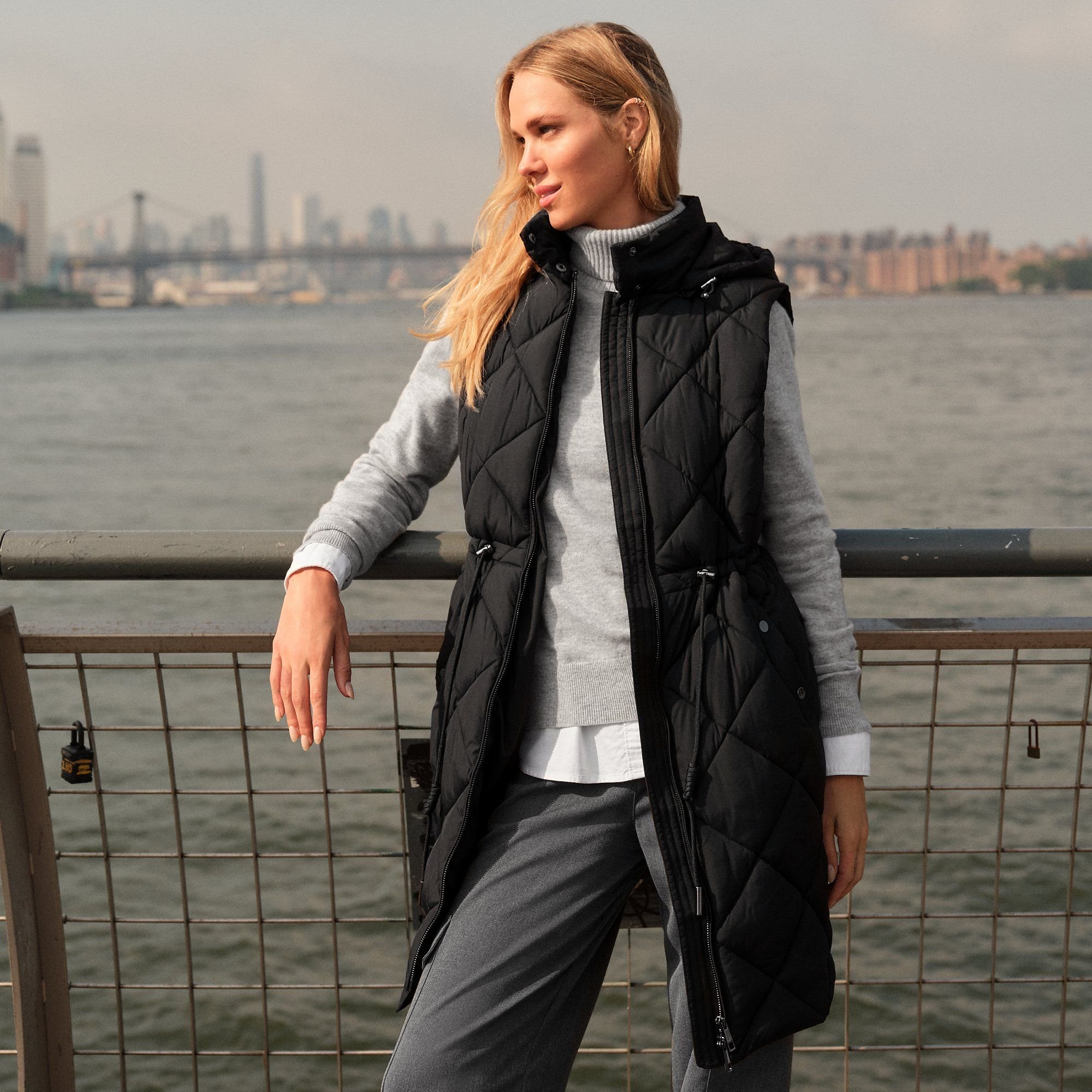 The Lands' End Black Synthetic Cinch Waist Gilet is ideal for casual, outdoor, everyday.