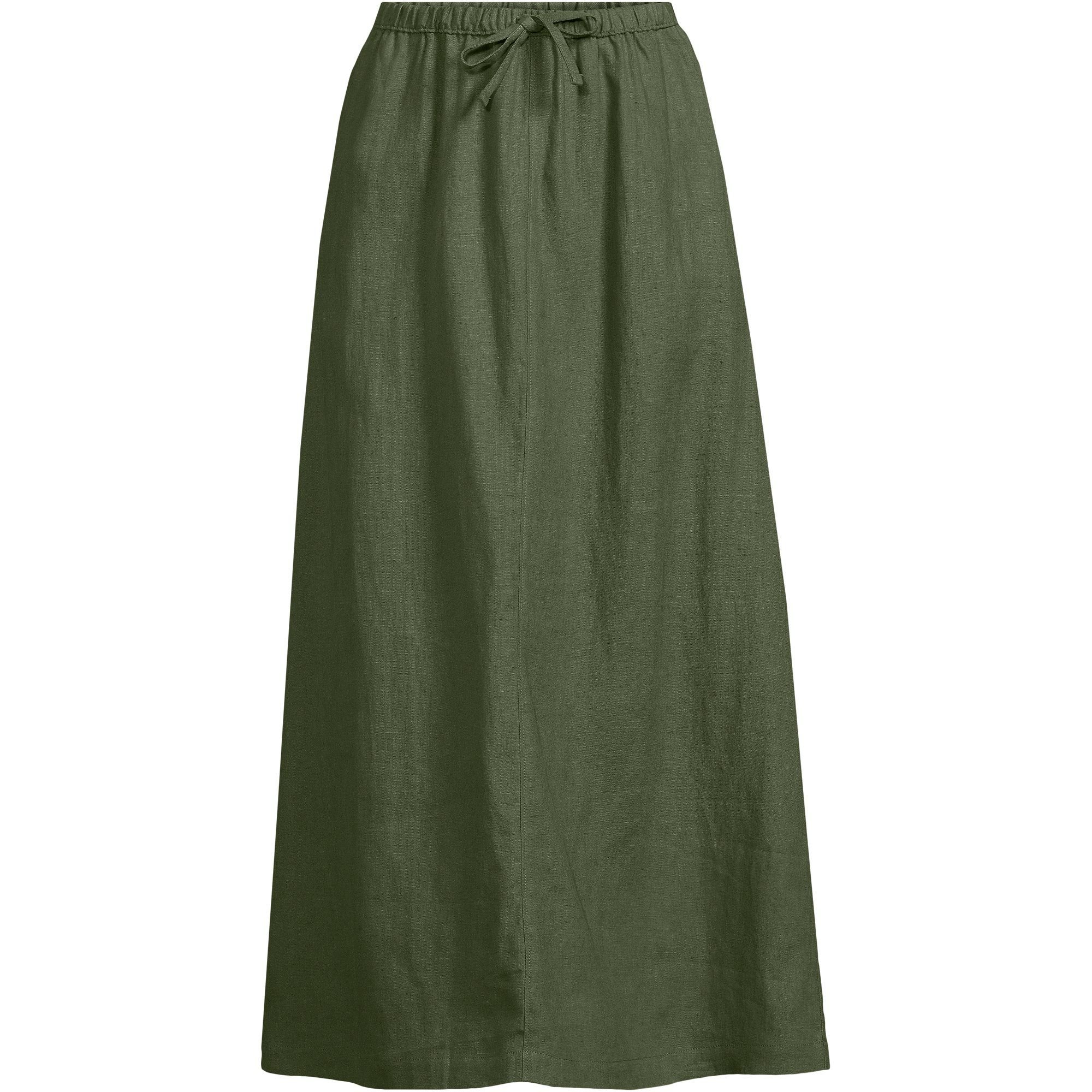 The Lands' End Dark Green Linen Longline Skirt is made from linen.