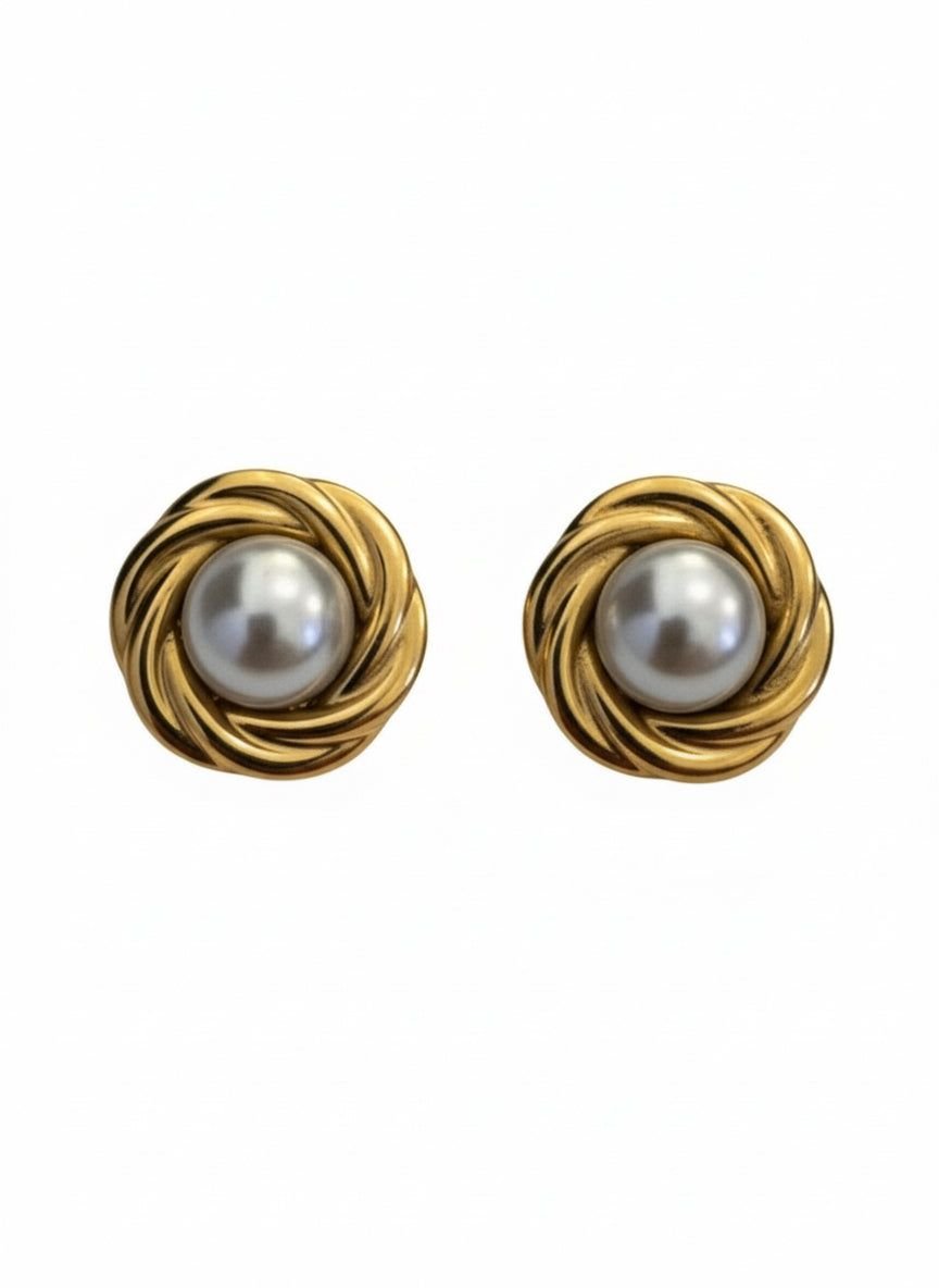 Elegant gold-plated pearl knot stud earrings from Latelita. Featuring a central pearl surrounded by a twisted knot design, these earrings bring a touch of old-school glamour to any outfit.