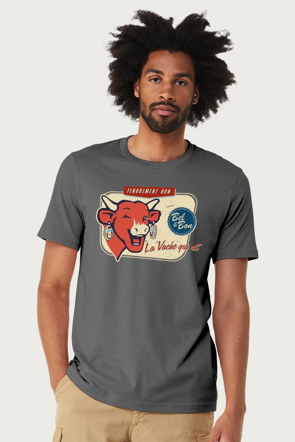 The The Laughing Cow Charcoal Cotton Retro T-Shirt is ideal for casual, everyday.