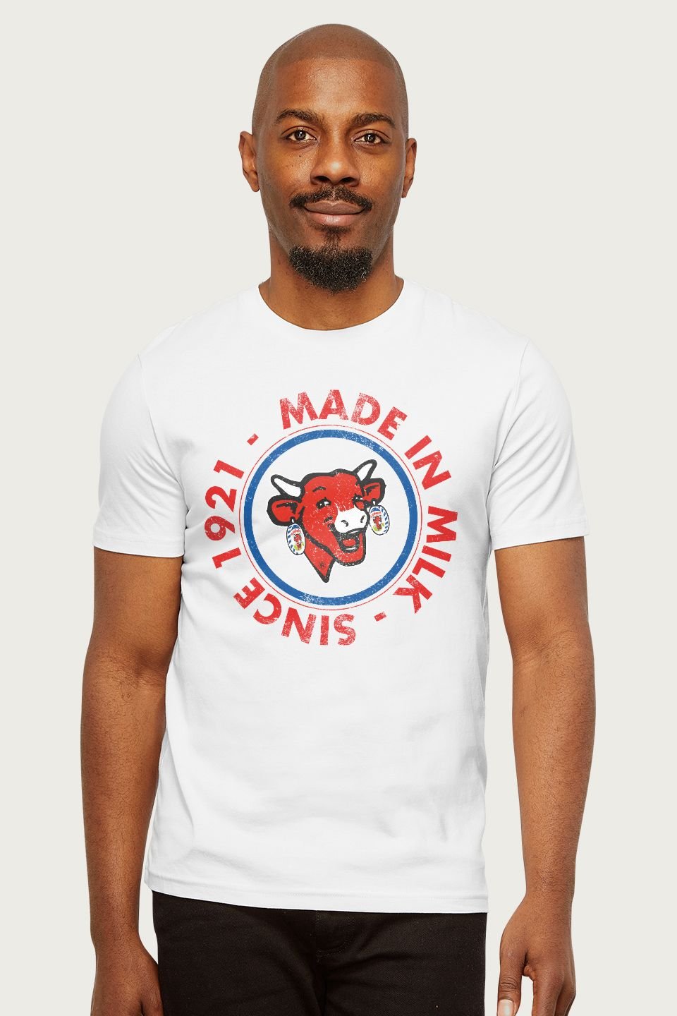 The The Laughing Cow Men's Since 1921 T-Shirt in White is ideal for casual, everyday.