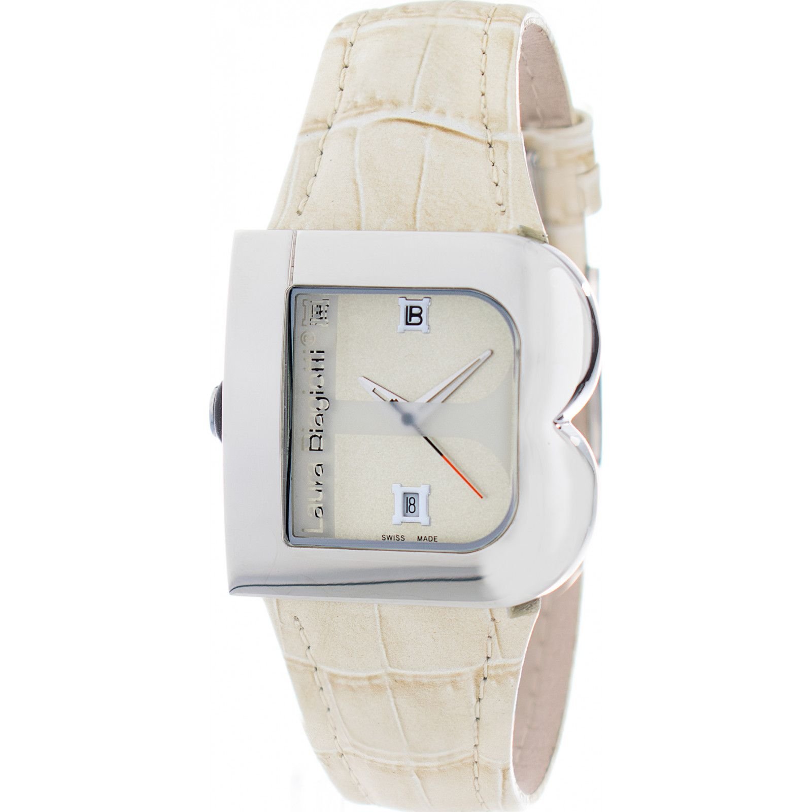 Stylish Laura Biagiotti watch in beige with a square dial and crocodile-patterned leather strap. A timeless accessory for any occasion.