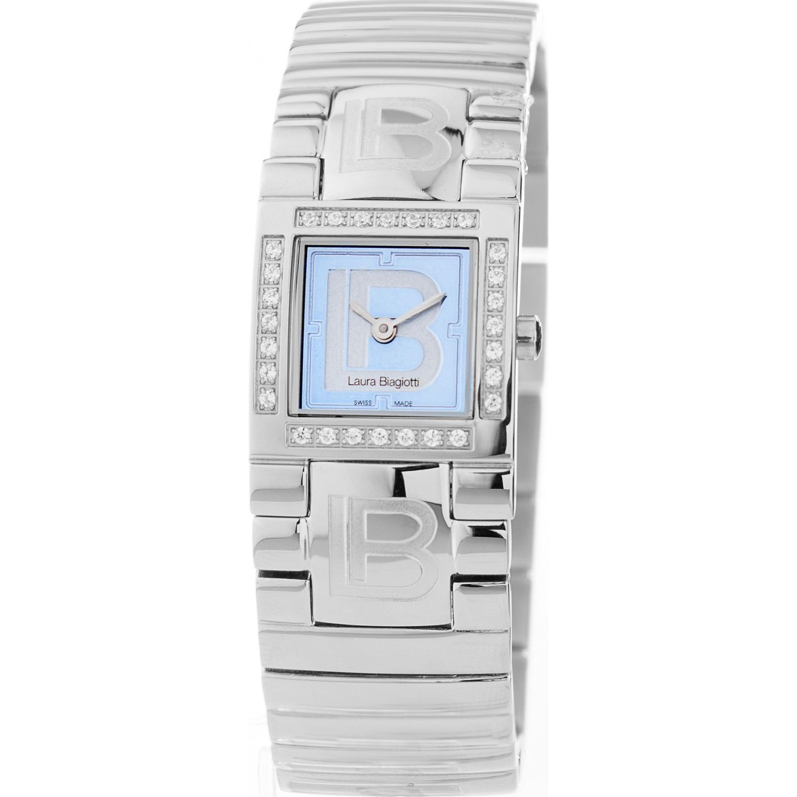 Elegant Laura Biagiotti ladies' watch in silver with a square dial and crystal accents. Crafted with a quartz movement for precise timekeeping. Ideal for everyday wear and special occasions.