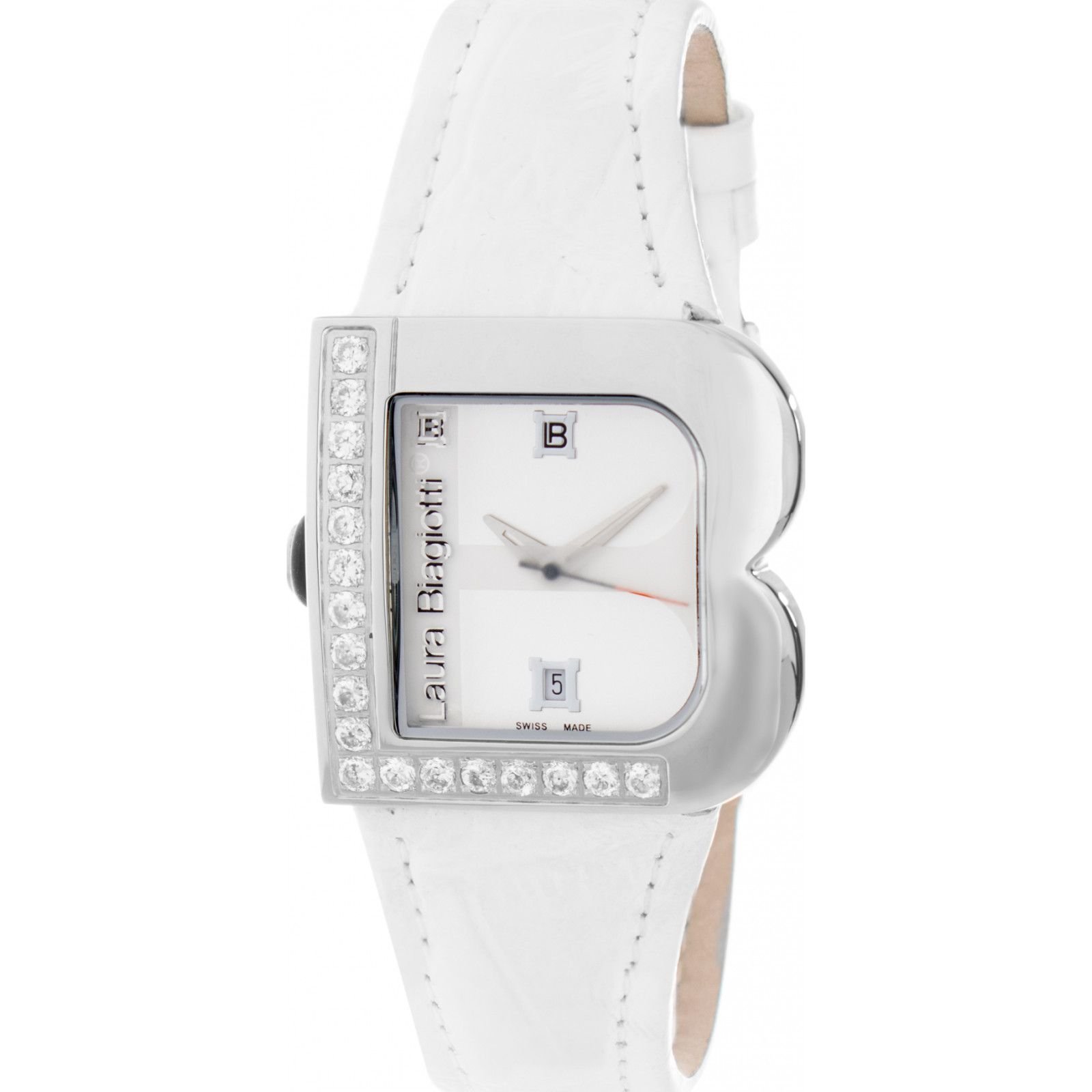 The Laura Biagiotti White Quartz Watch for Women is made from leather, crystal.