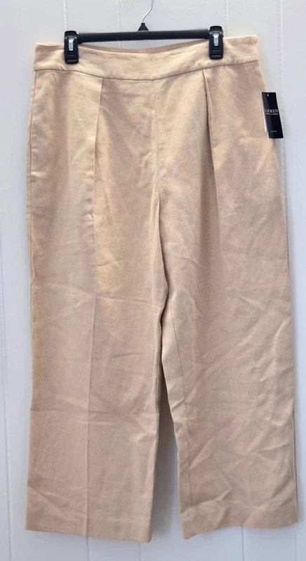 The Lauren Ralph Lauren Wide Leg Side Zip Pants in Beige is made from viscose, linen, cotton.