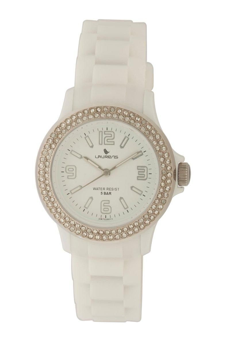 Stylish off-white watch from Laurens Basic featuring a crystal-embellished bezel and water-resistant design. Ideal for everyday elegance.