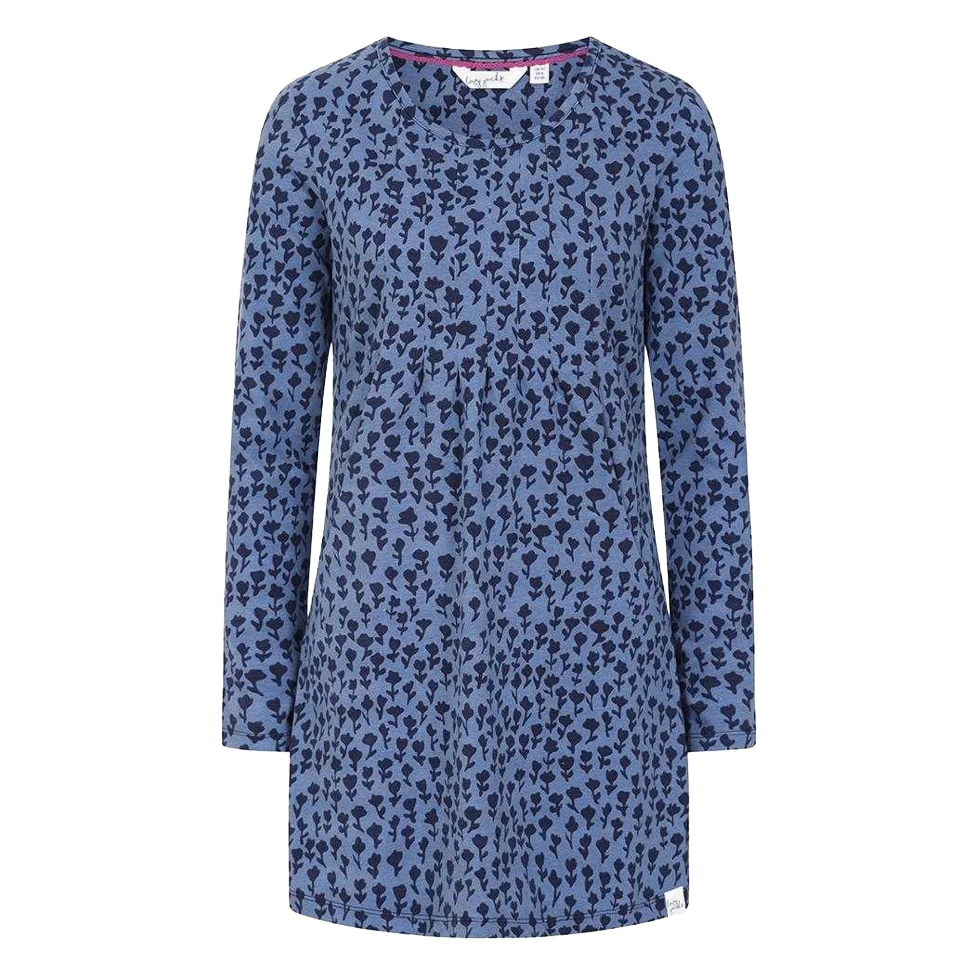This blue floral tunic top by Lazy Jacks is made from 94% cotton and 6% elastane. It features a printed design and a flattering fit. Ideal for casual wear, this top is perfect for any occasion.