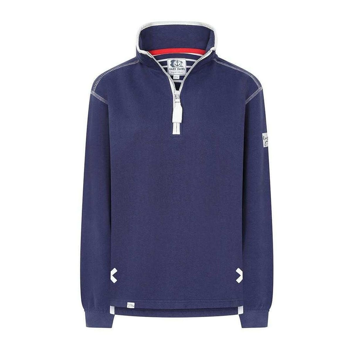 The Lazy Jacks Women's Dark Blue Quarter Zip Sweatshirt is available in sizes 16-18, 8-10.