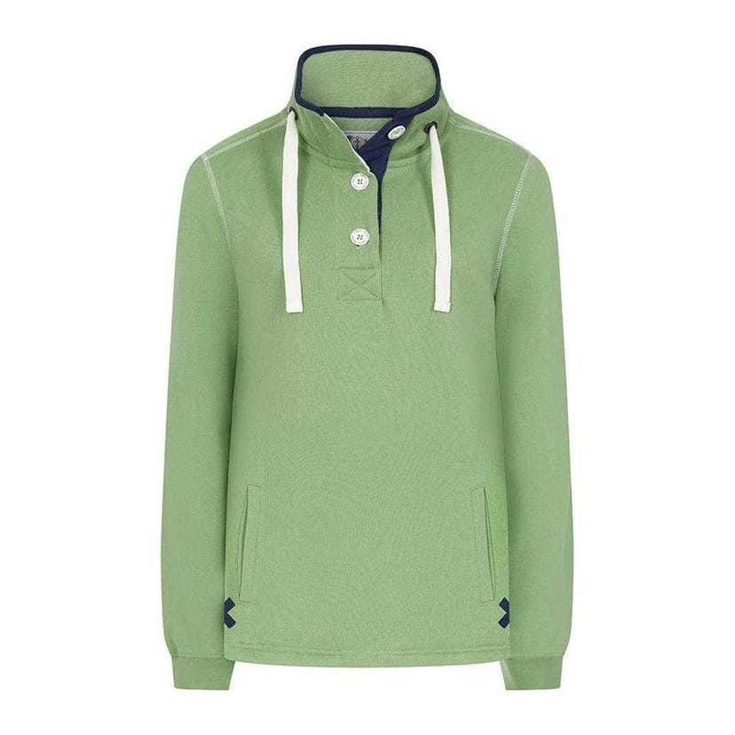 This Light Green Cotton Sweatshirt by Lazy Jacks features a button placket, adjustable drawcord collar, and embroidered logo. The heavyweight, soft fabric ensures comfort and durability. Ideal for casual wear.
