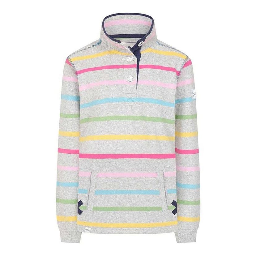 The Lazy Jacks Women's Multicolor Striped Sweatshirt is available in sizes 10, 12, 14, 16, 18, 8.