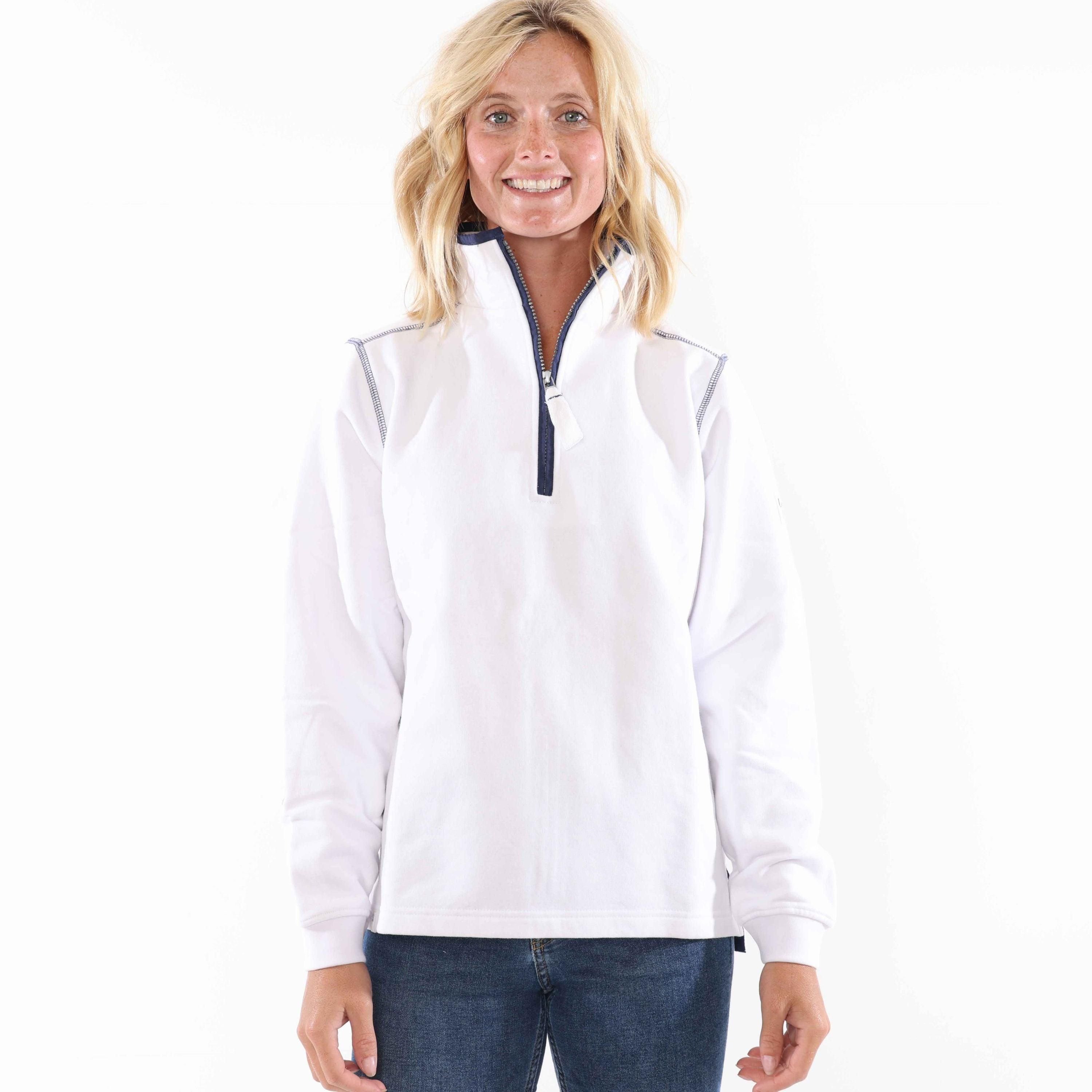 The Lazy Jacks White Cotton Quarter Zip Sweatshirt is available in sizes 2XL.