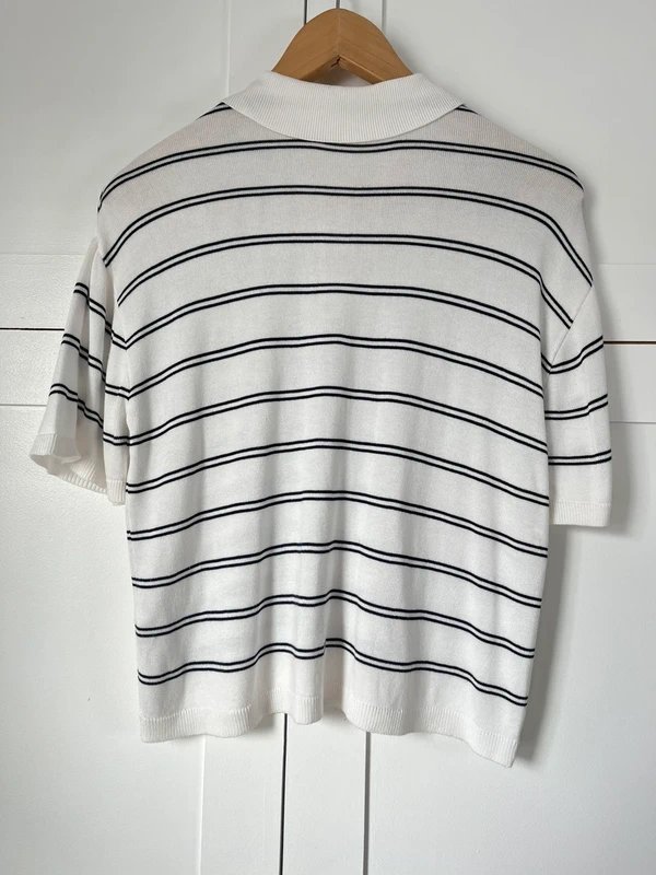 The Lefties White and Black Striped Knitted Cropped Polo Collared Jumper Top is available in sizes S.