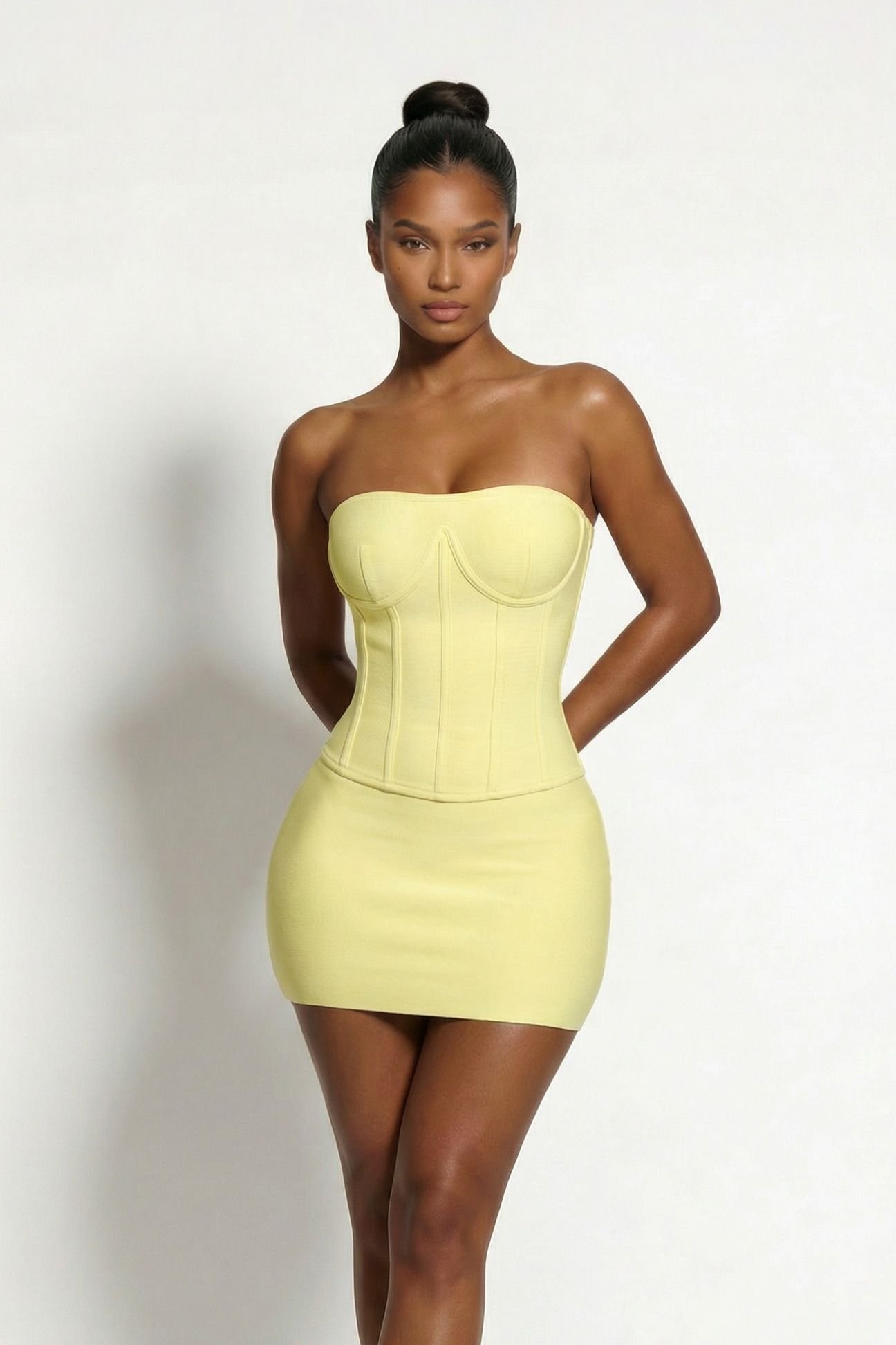 The LEMONLUNAR Yellow Bandage Corset Top is ideal for evening, date-night, party.