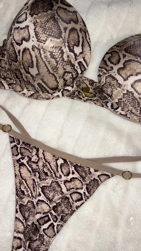 Designed in leopard print, this set features a push-up bra and thong pants. Perfect for a casual and beach look.