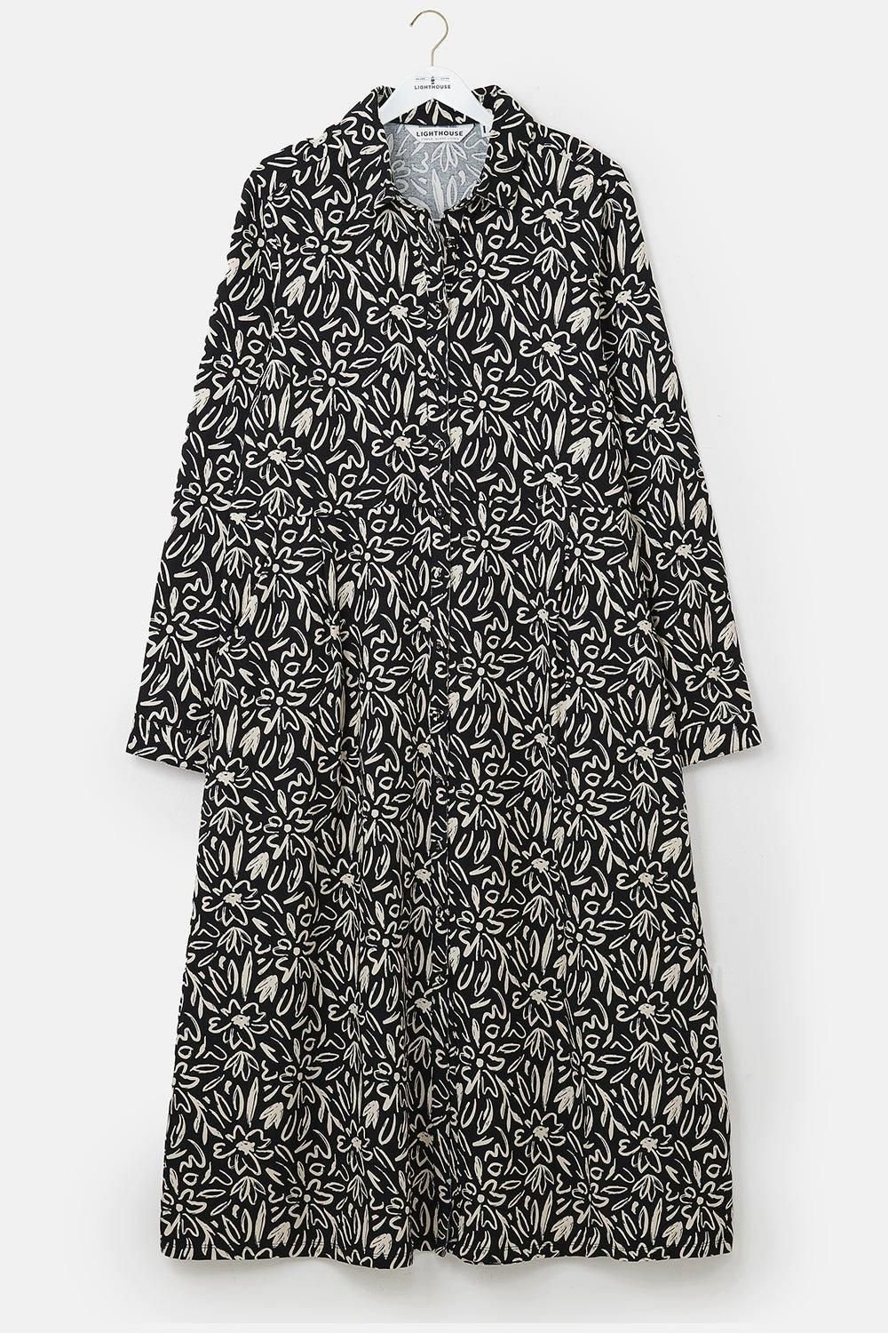 The Lighthouse Clothing Black Floral Midi Dress is made from viscose, cotton.