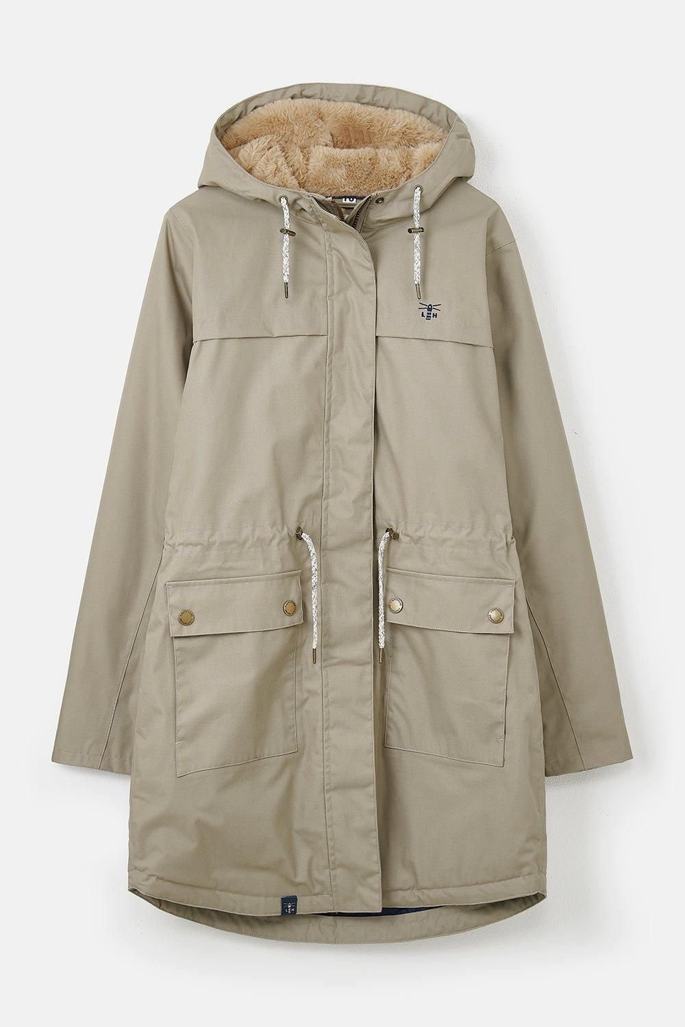 Stylish ¾ length waterproof coat with a faux fur-lined hood and upper for extra warmth. Features two front pockets and internal pockets for convenience. Perfect for urban adventures.