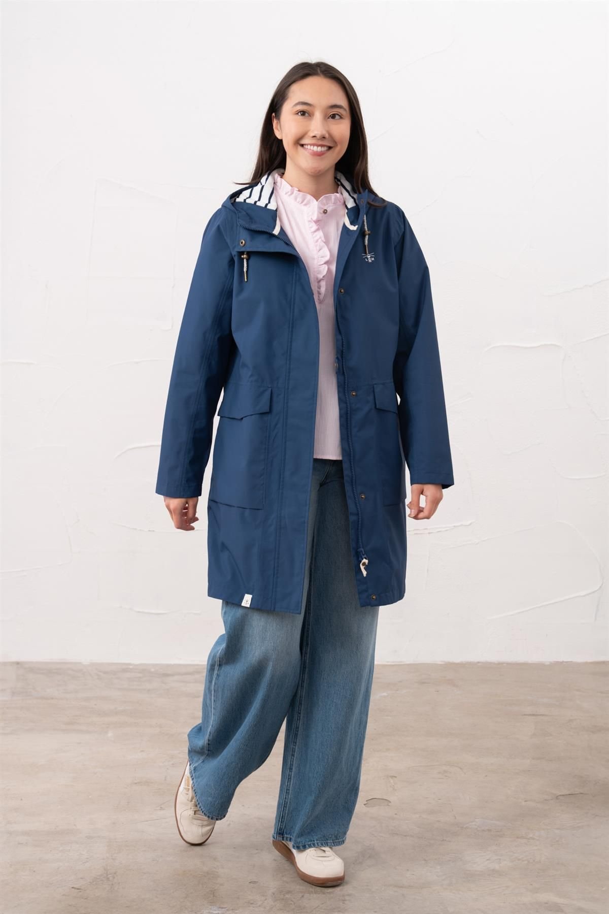 The Lighthouse Clothing Midnight Blue Long Beachcomber Jacket is available in sizes 10, 12, 14, 16, 18, 20, 8.