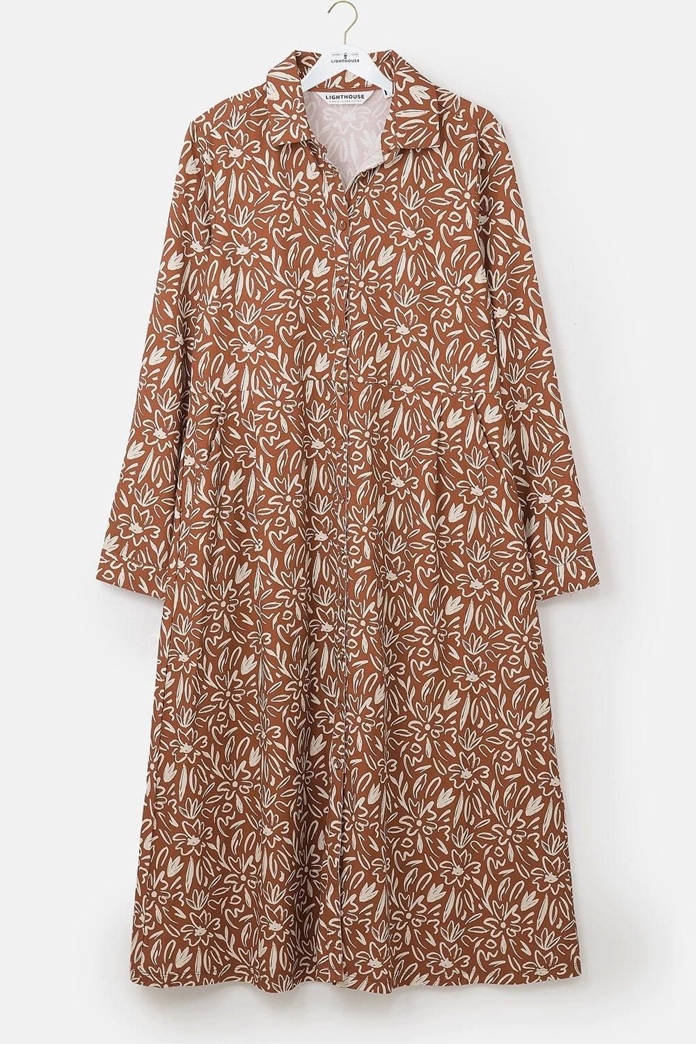 Stylish midi dress with a collared neckline and waist pockets. Made from a luxurious blend of viscose and cotton, this dress offers both sophistication and comfort. The floral print adds a touch of elegance, making it perfect for any occasion.