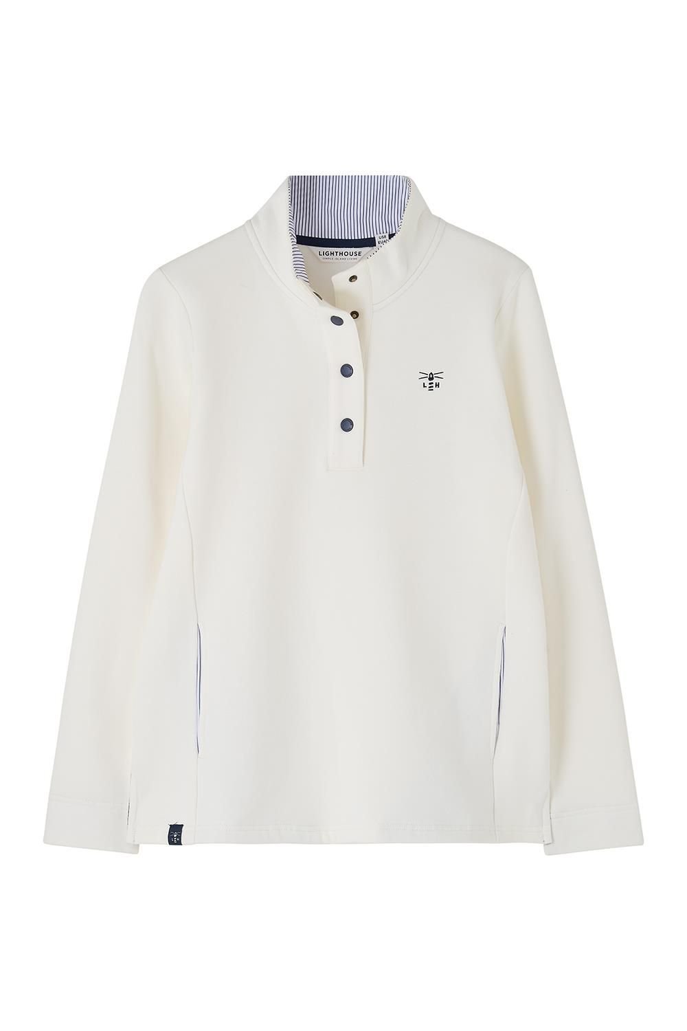 Stylish funnel neck sweatshirt with added popper detail. This cotton brushed jersey top is perfect for versatile wear throughout the year. Ideal for cooler evenings, seaside strolls, or sunny outings.