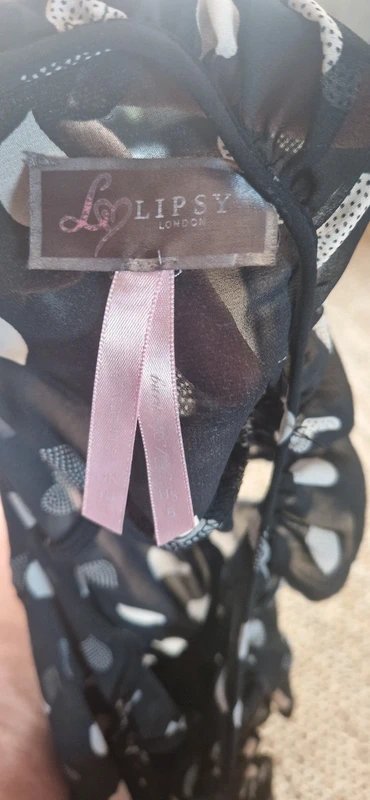 The Lipsy Black and White Heart Design Playsuit is available in sizes M.