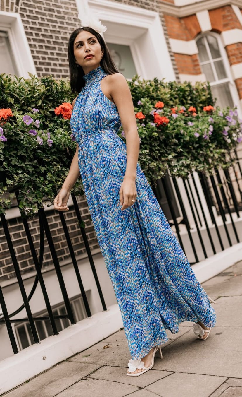 The Little Mistress Blue Print Chiffon Maxi Dress is ideal for formal, special occasions, evening events.