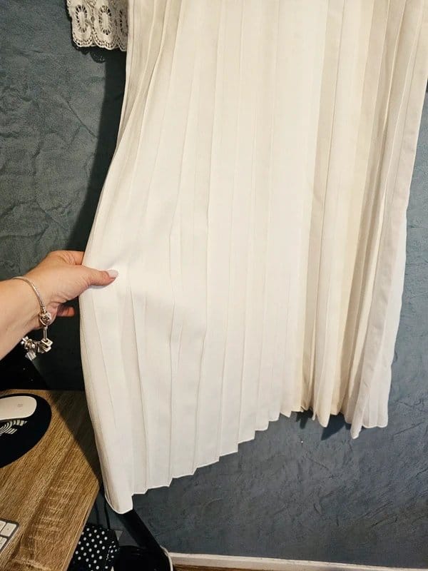 “Pair with white ankle boots and a cream crossbody bag for a chic daytime look.”